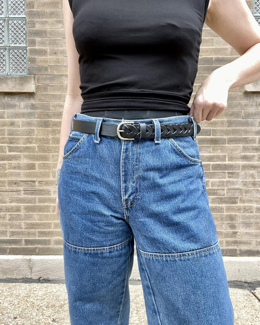 The British Belt Company Briony Handwoven Italian Full Grain Leather Black Belt
