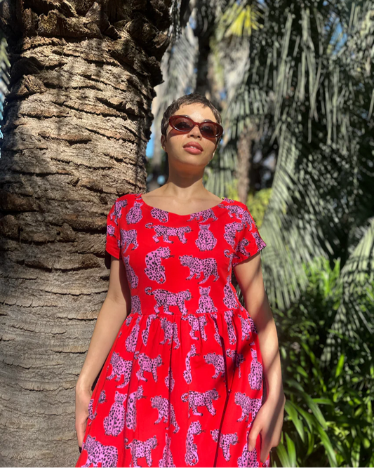 Squasht Petal Sleeve Dress in Scarlet Red Ditsy Floral Print