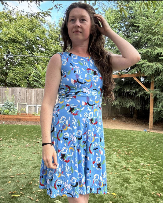 KD Designs Jenny Keyhole Dress in Blue Party Print - Size Small, Medium - SALE