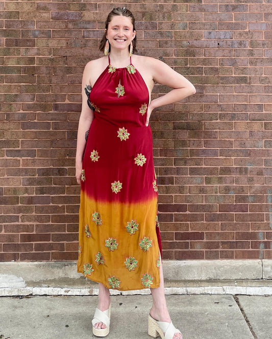 Indie Ella Eden Backless Silk Key Hole Maxi Dress in Shangri-La