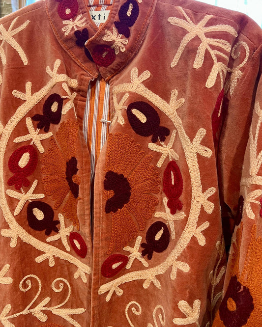 Txtile Velvet Evil Eye Jacket in Tan with Brown Eyes