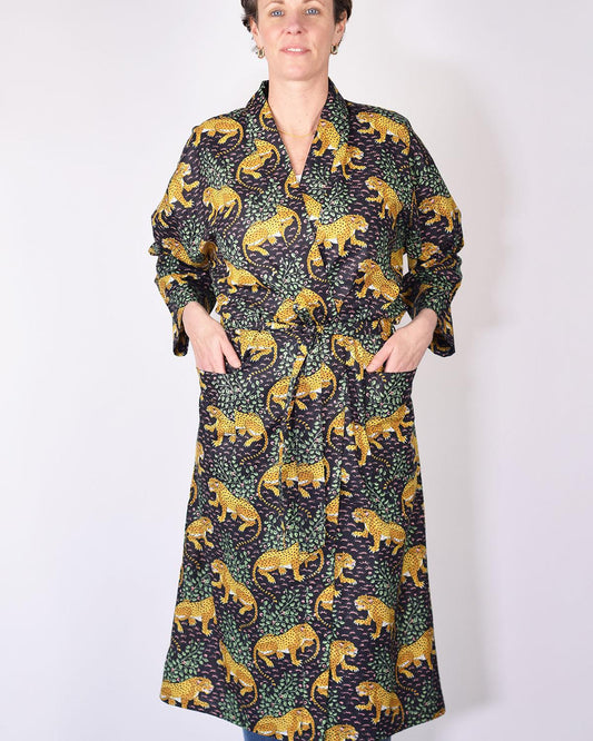 Txtile Lightweight Cotton Robe - Midnight Jungle Leopard Print