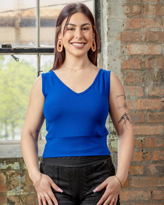 Squasht Sleeveless Ballet Top in Solid Sapphire Blue