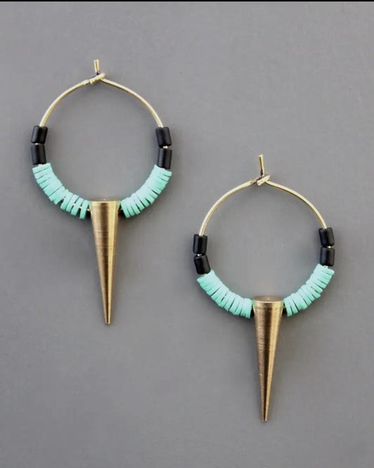 David Aubrey Green Vulcanite and Brass Spike Hoop Earrings