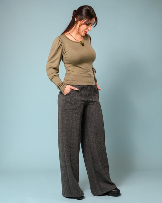 Squasht Ruched Mini Skirt In Cozy Grey & Navy Stripe Sweater Knit - SALE