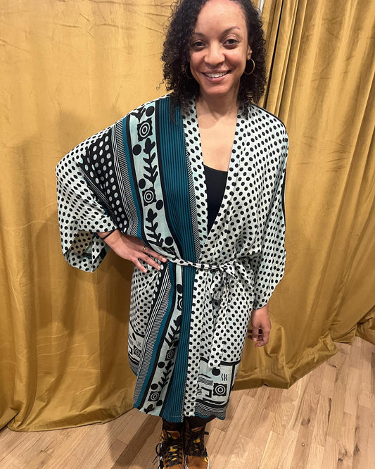 Indie Ella Kimono Silk Duster in Tomoe Gozen
