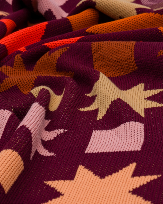 Verloop Tile Patch Chenille Throw Blanket in Peach
