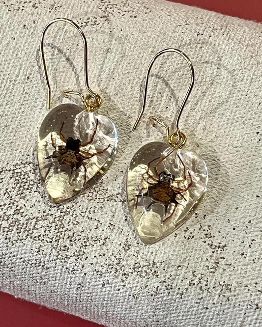 Pajaro Negro Orb Weaver Spider Heart-Shaped Earrings