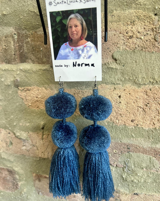 SWIETstuff Large Pom Pom Earrings Dusty Blue