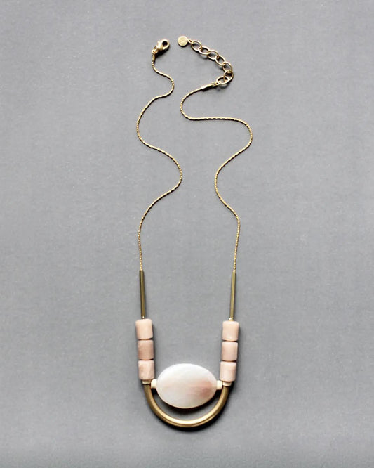 David Aubrey Peach Moonstone and Agate Geometric Necklace