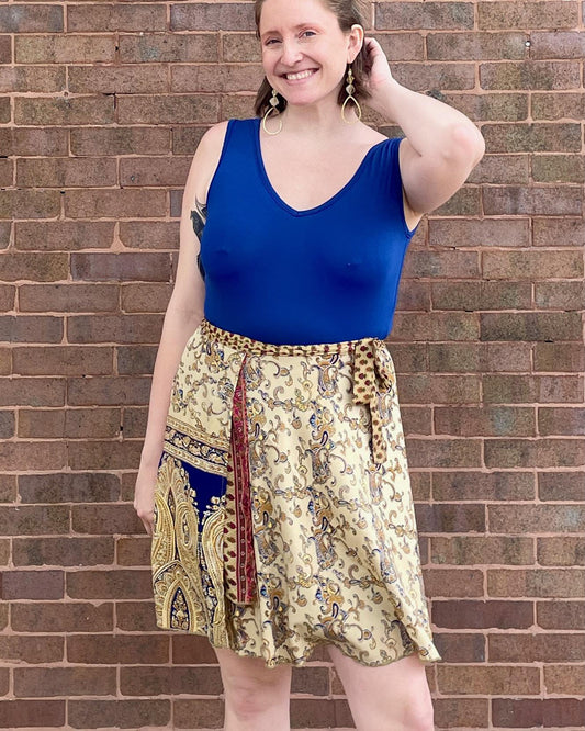 Indie Ella Talya Short Flowy Silk Wrap Skirt in Hidden Princess