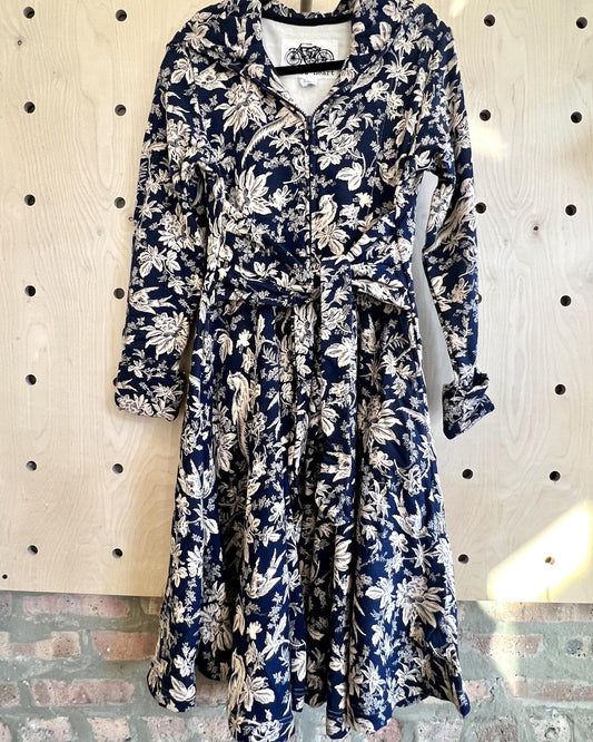 Txtile Alfie Chore Jacket Blue w/ Pink Embroidery Size Medium - Quilted Patchwork Kantha Jacket