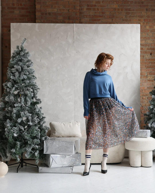 Wulfka Audrey Cropped Hoodie with Thumbholes in Sky Blue