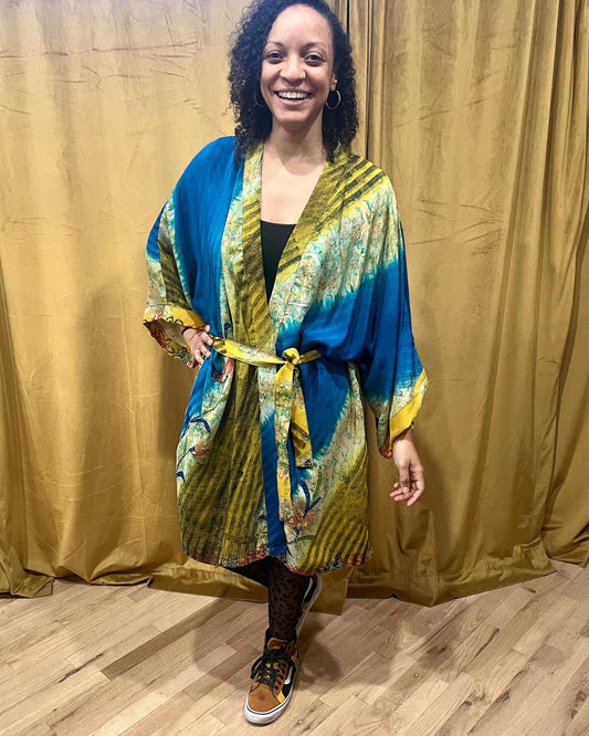 Indie Ella Kimono Flowy Silk Duster in Blue Lagoon