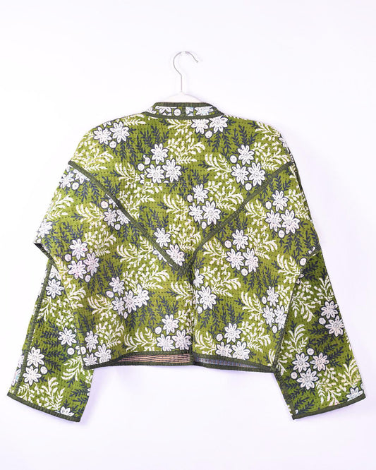 Txtile Sofie Leaf Green Quilted Reversible Patchwork Kantha Jacket