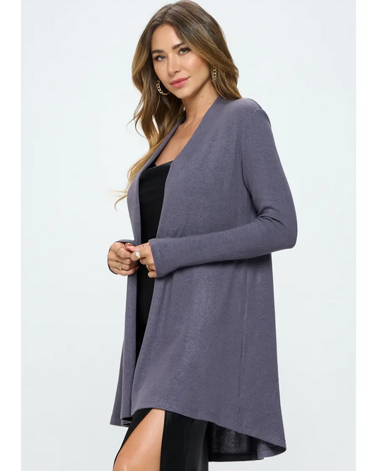 Renee C. Brushed Knit Draped Cardigan in Slate