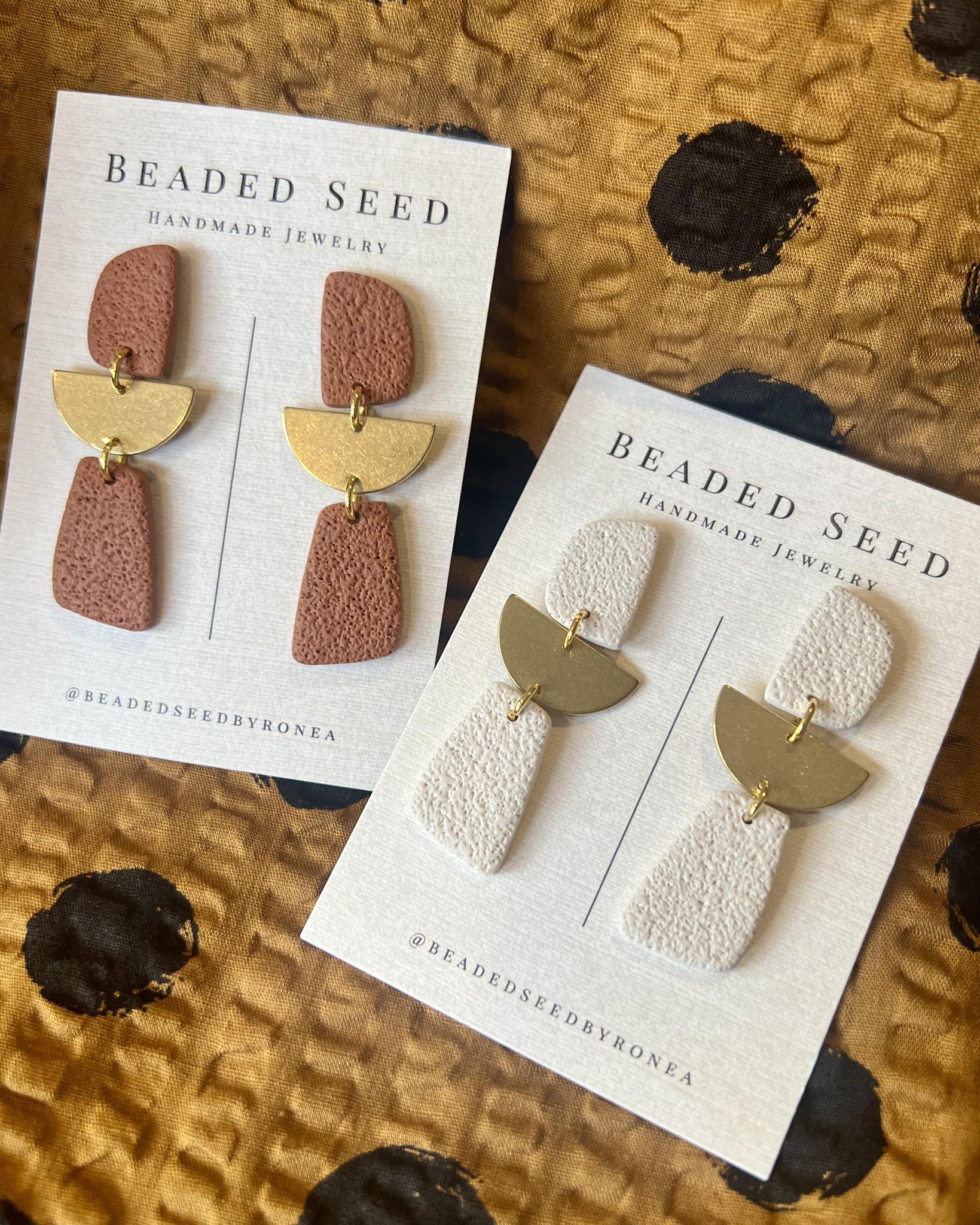 All earrings are assembled with brass charms and gold/silver plated earring posts.