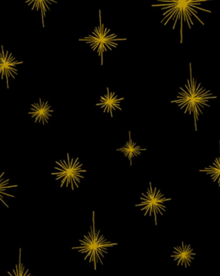 Made up in a whimsical gold twinkle print that sparkles against a deep black background—subtle, stylish, and just the right amount of fun.