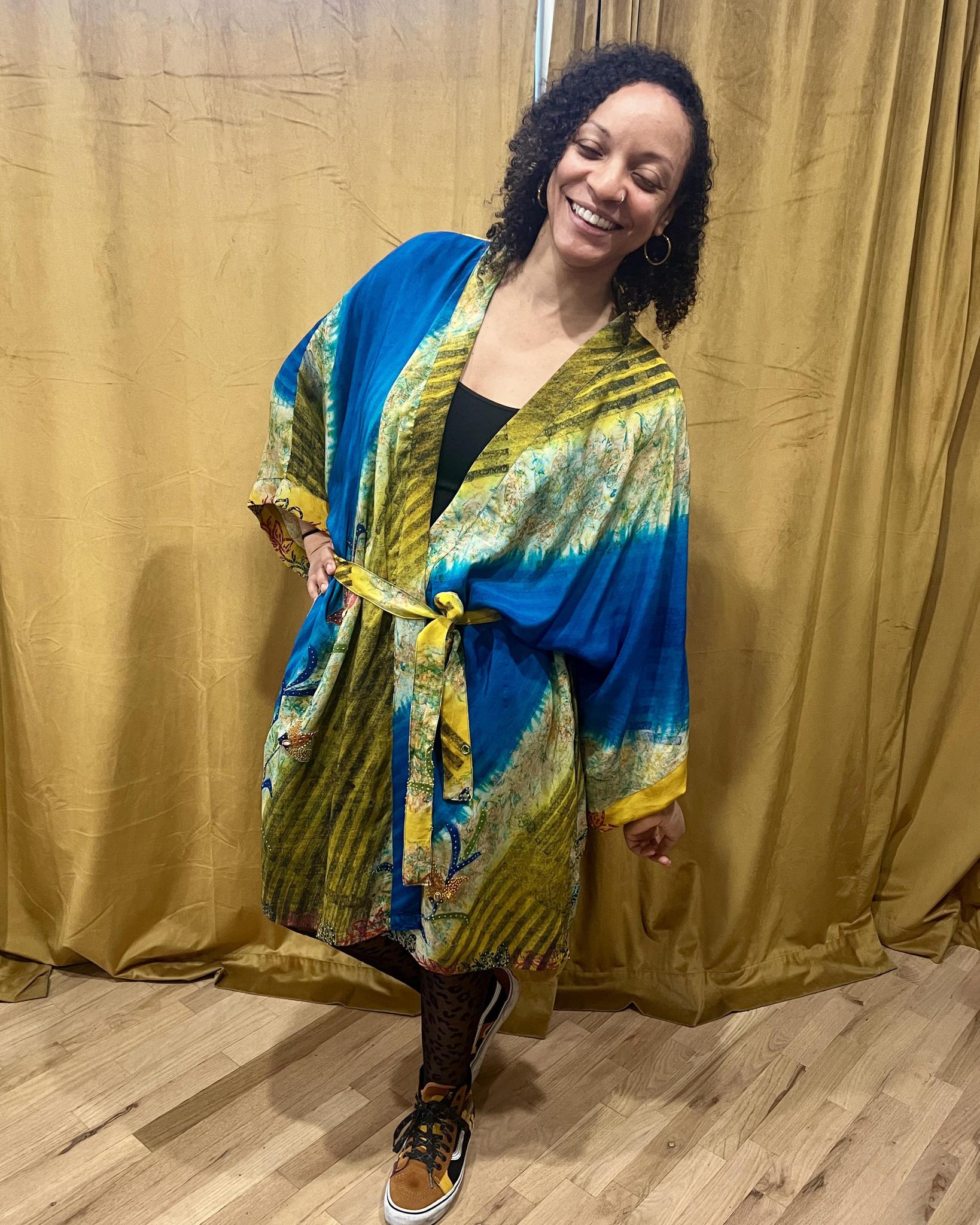 Indie Ella Kimono Flowy Silk Duster in Blue Lagoon