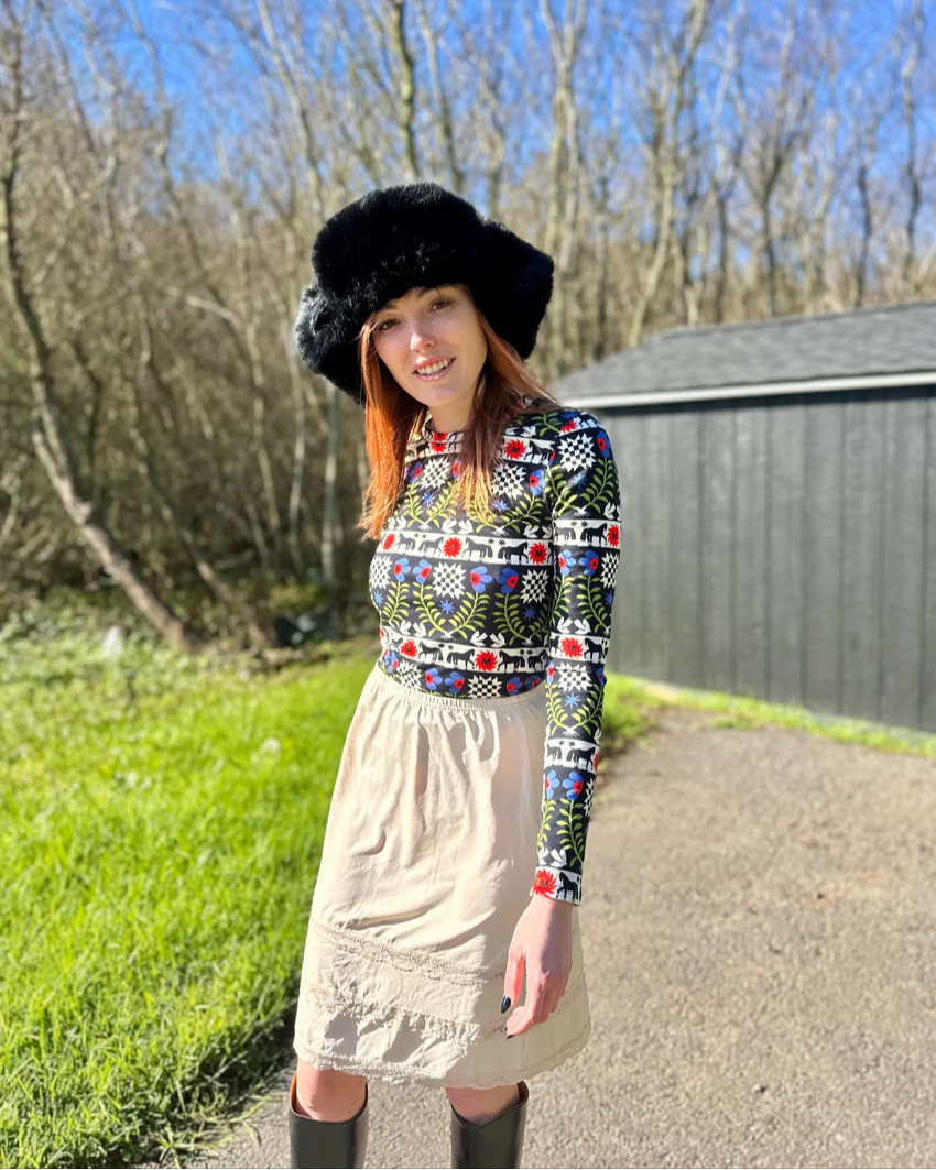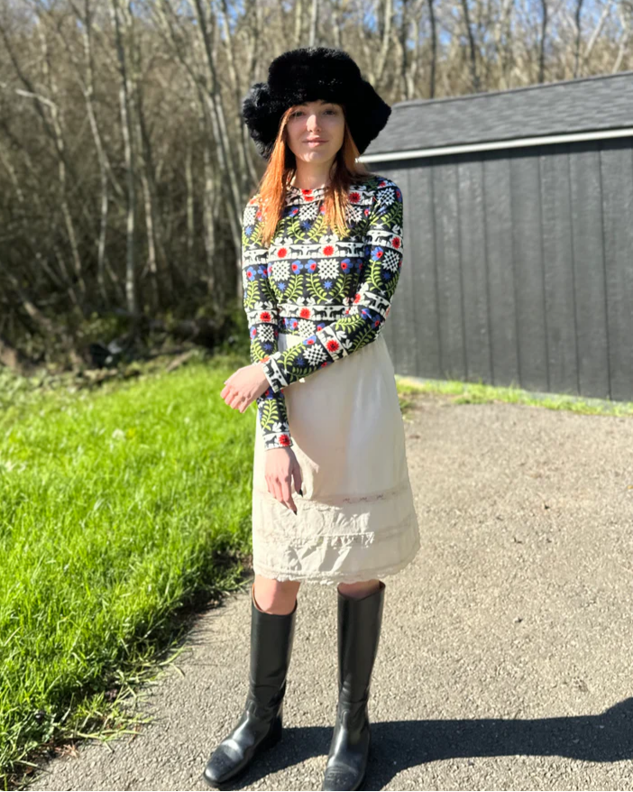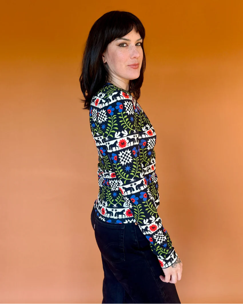 + Care Instructions: To help preserve the quality of your garment, only wash when it truly needs it. Then, turn it inside out and hand wash with cold water and a gentle detergent. Line dry.