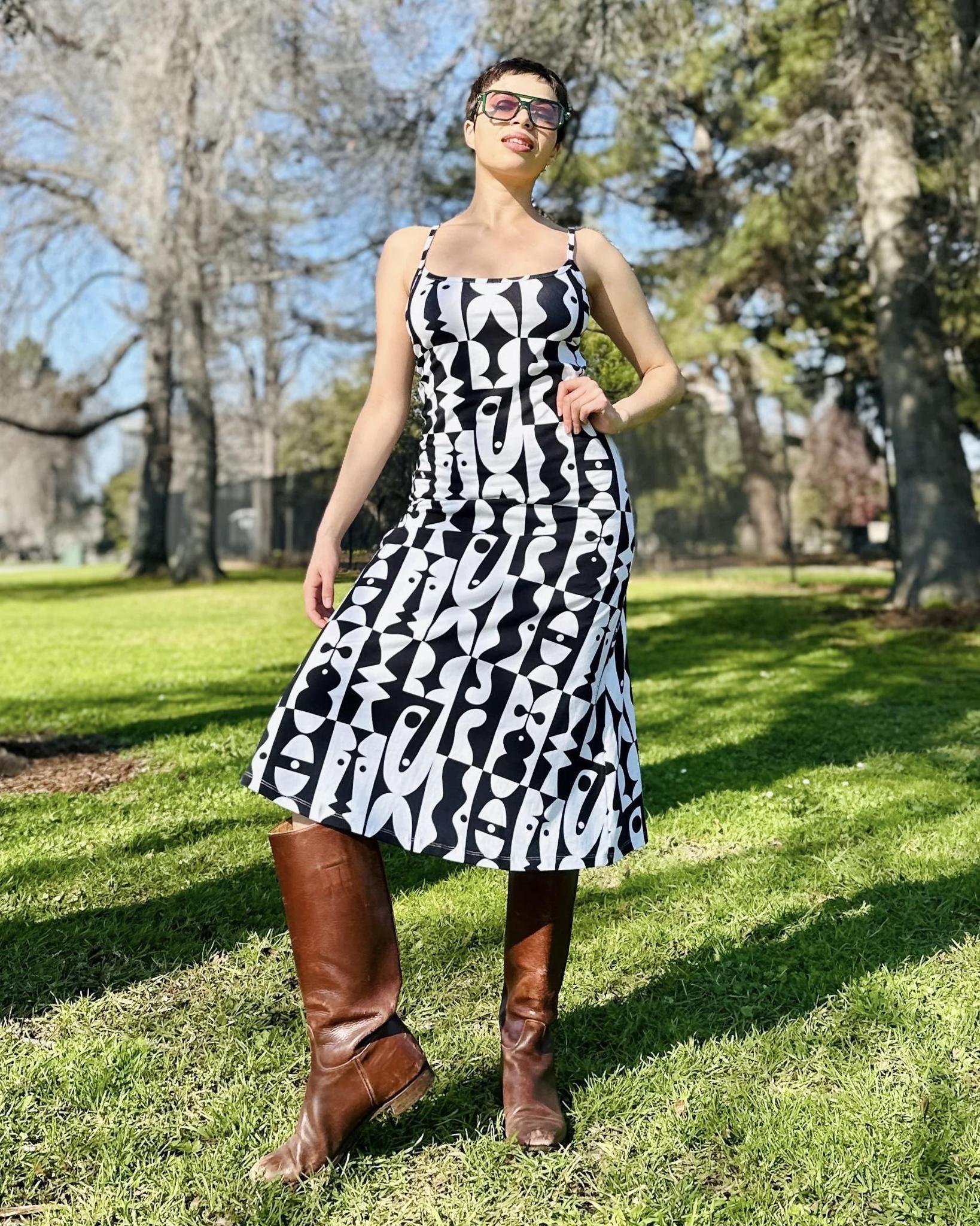 An effortless, body-skimming midi cut in soft stretch cotton jersey. Fitted through the bodice with a sleek, straight cut to the calves. Delicate spaghetti straps show off the shoulders and back. It's comfortable, flattering, and easy to style up or down.