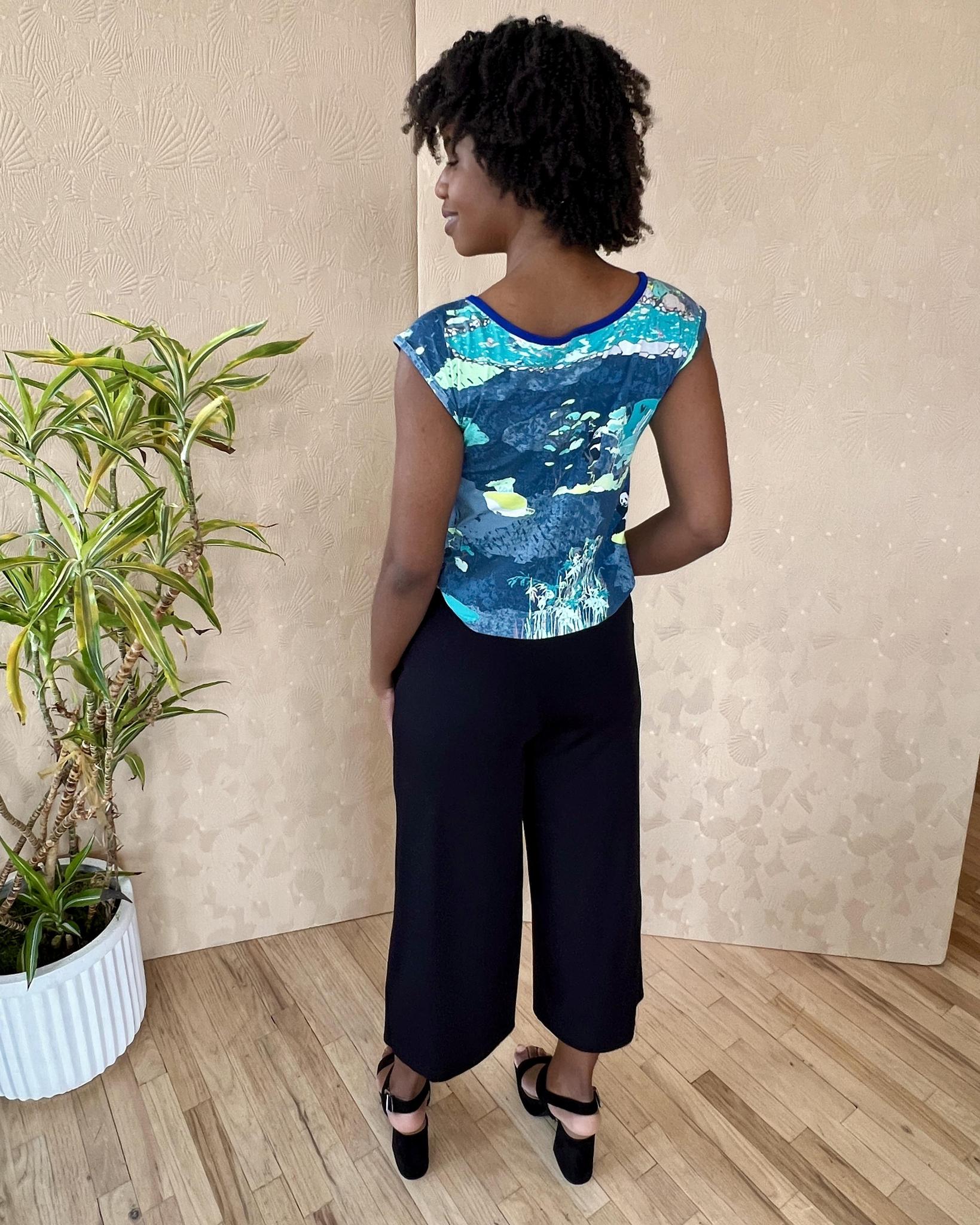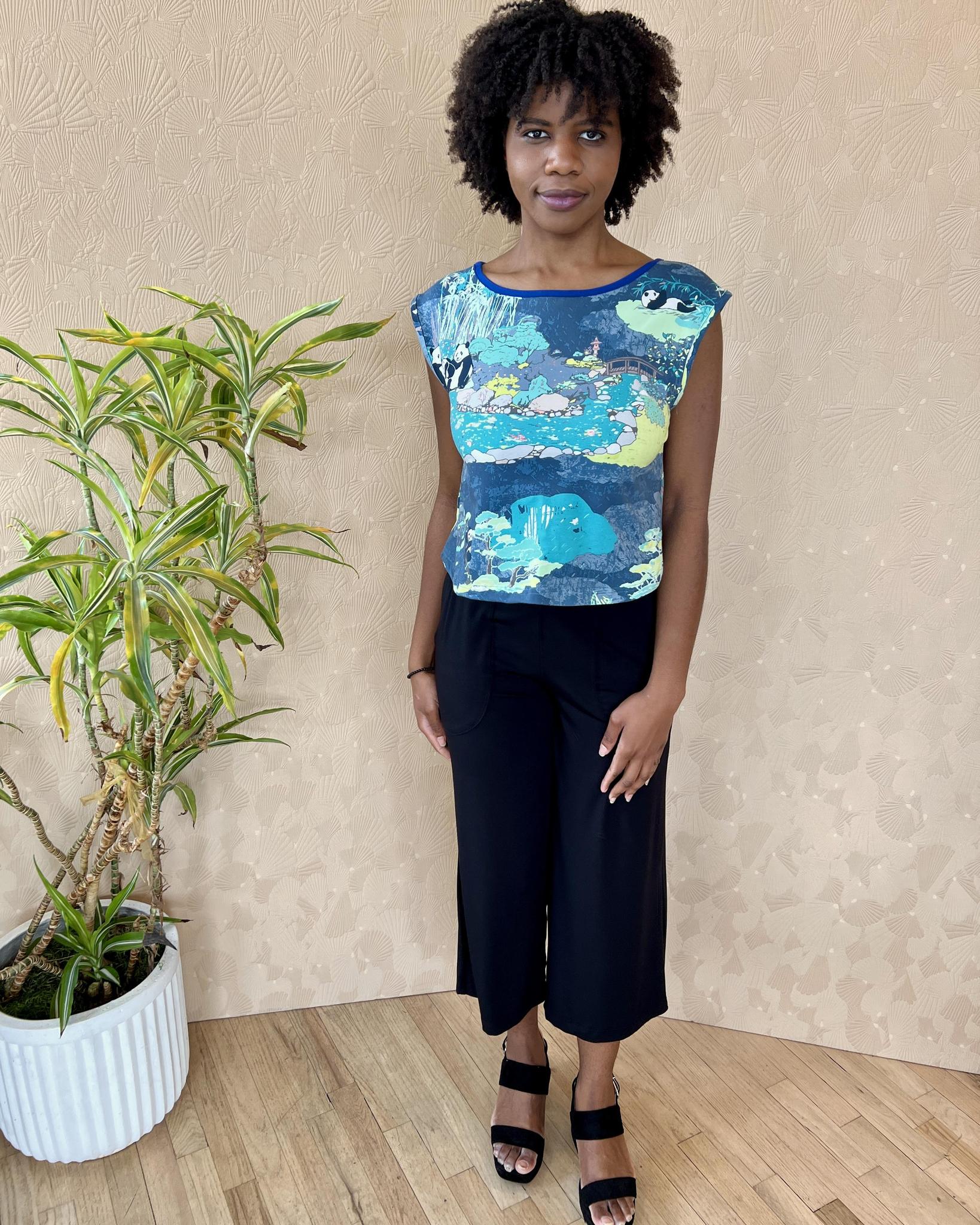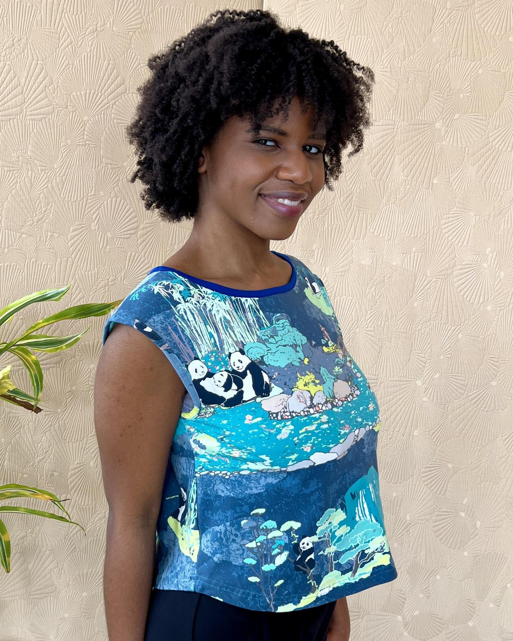Our newest tees are the perfect length. I think we will call them croppish - because they are cropped, but not too much. Hey look, we invented a word. Our croppish tee in our best-selling panda party print is perfect for fun spring and summer outfits.