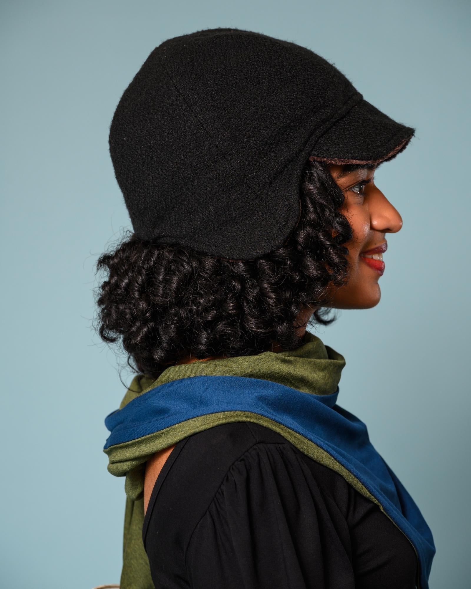 Squasht Darby Earflap Hat in Solid Black Wool Felt