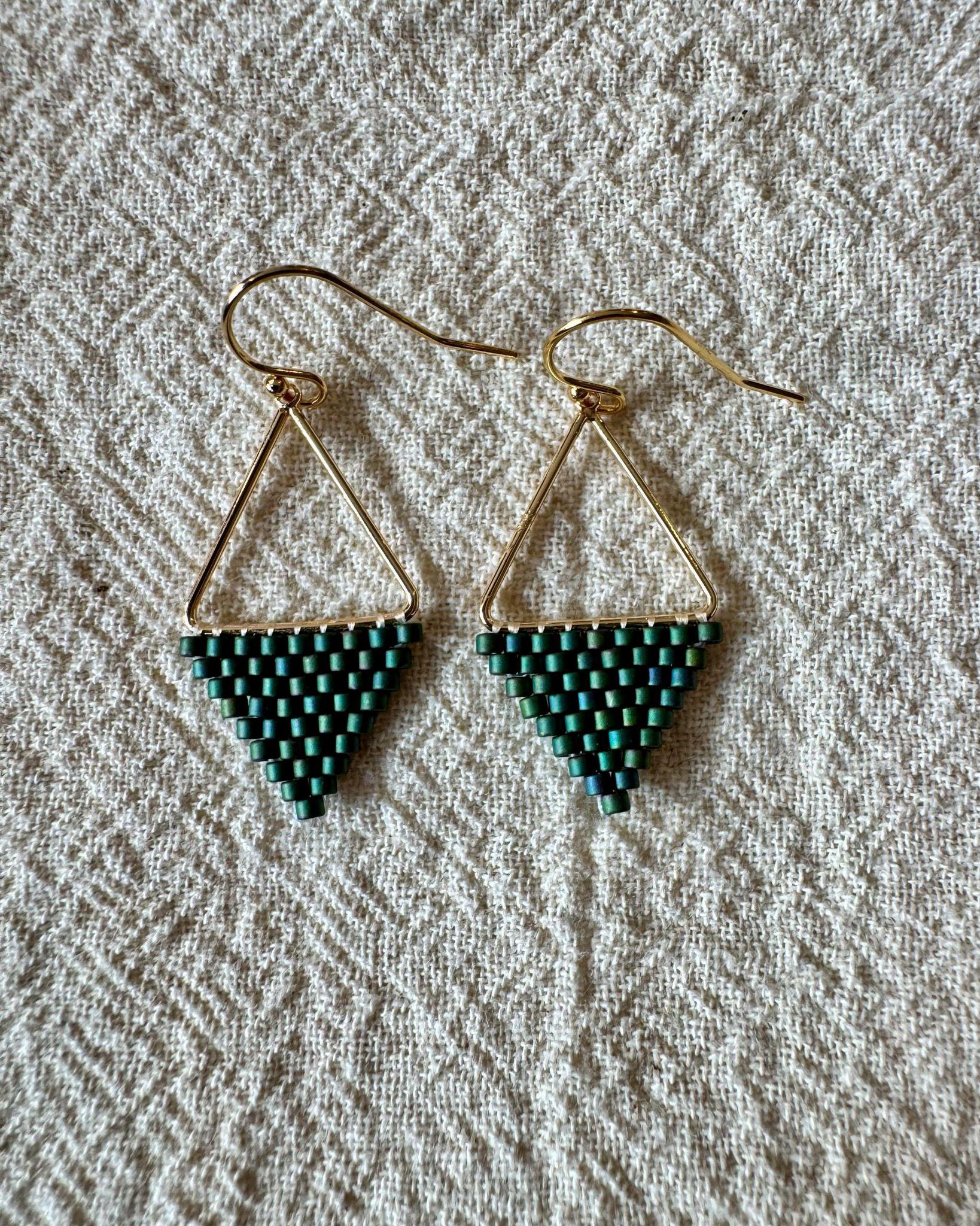SV Beads Small Japanese Beaded Triangle Earrings in Forest Green