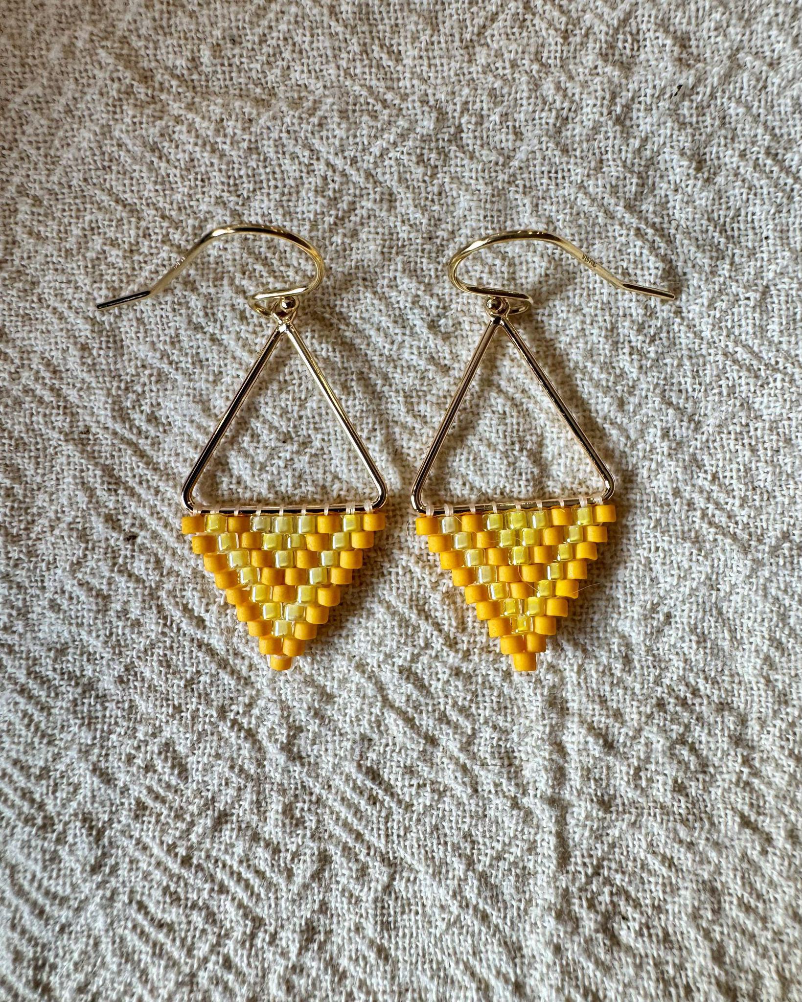 SV Beads Small Japanese Beaded Triangle Earrings in Yellow & Champagne