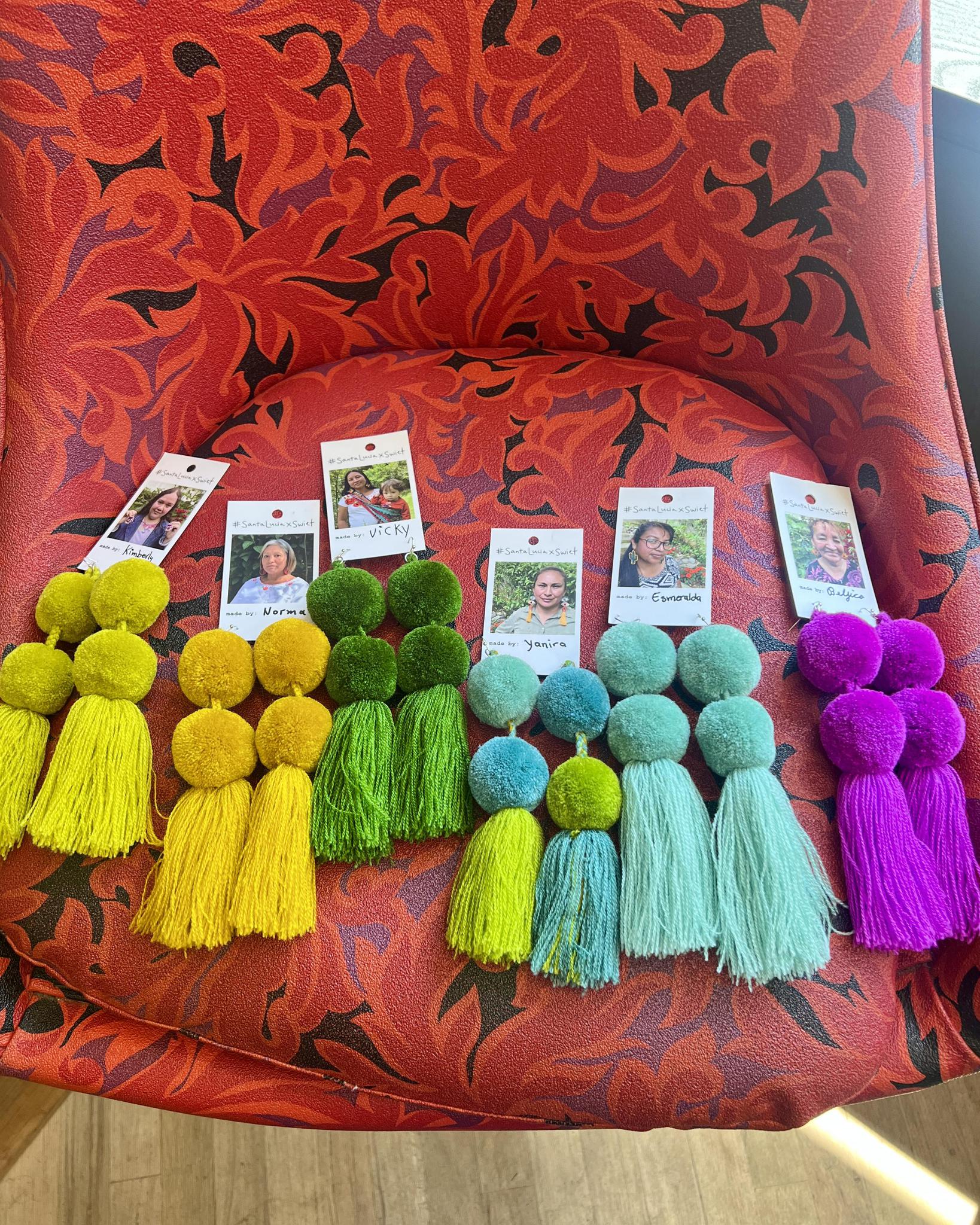 Super light-weight, super cute pom pom earrings, individually handmade in Guatemala.