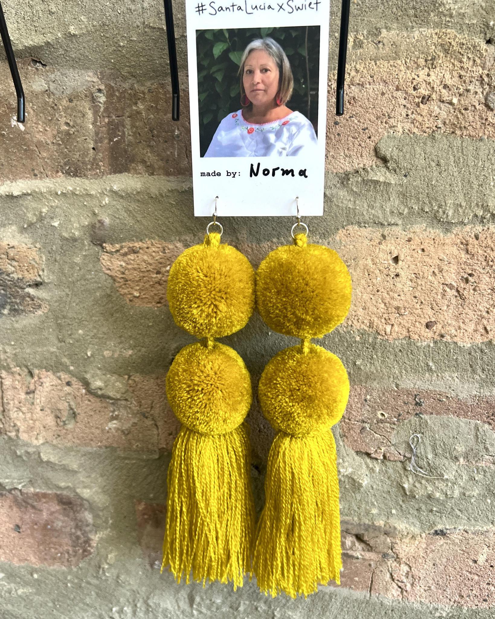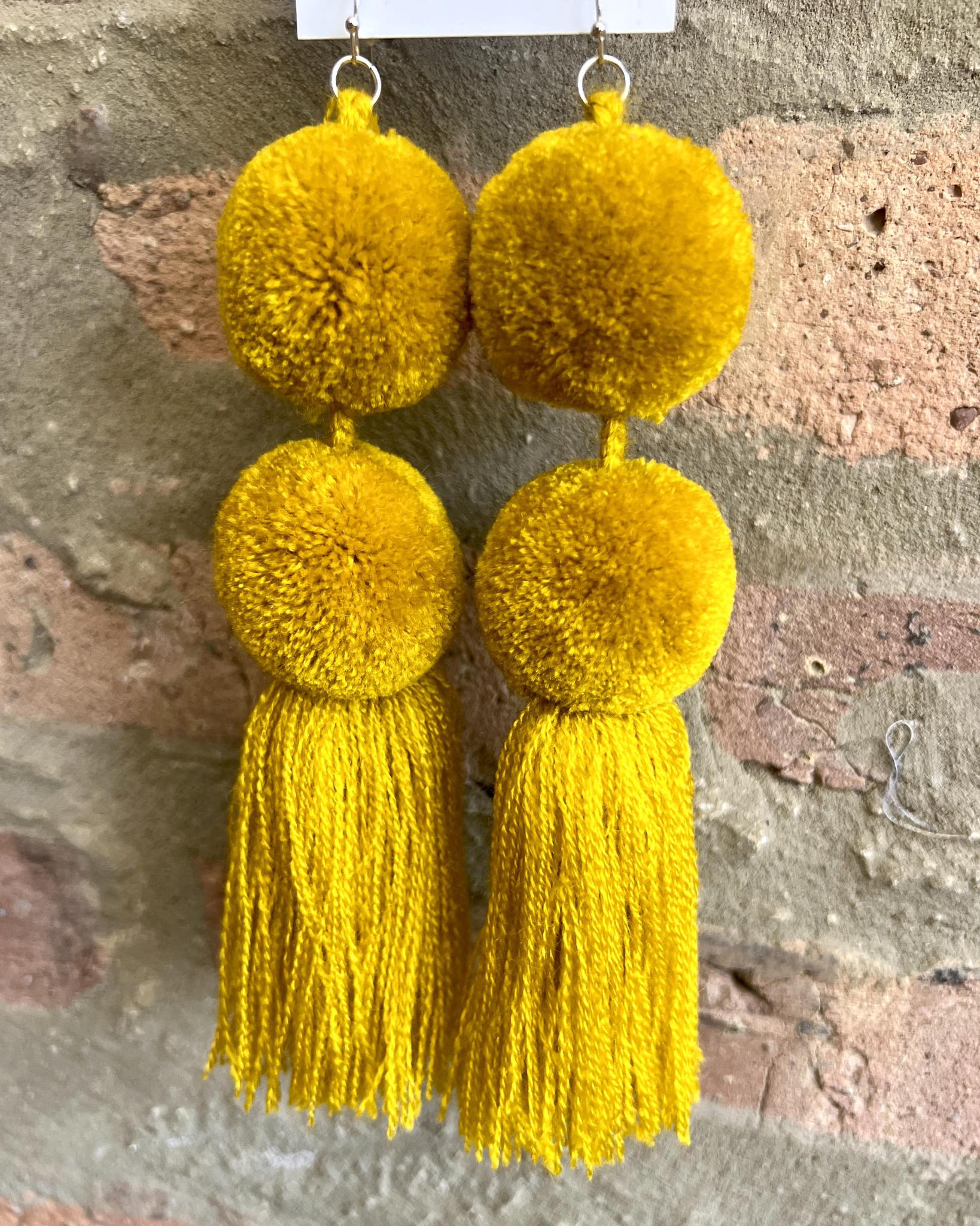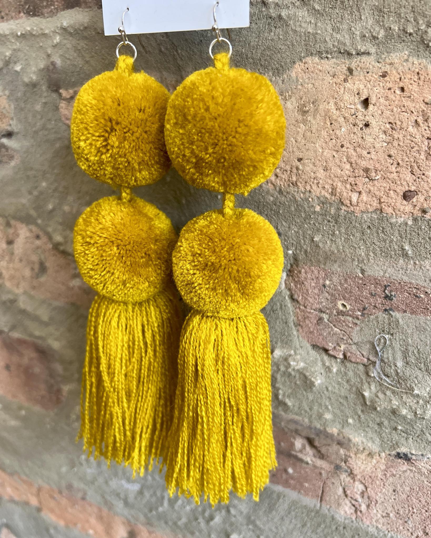 SWIETstuff Extra Large Pom Pom Earrings Mustard Gold