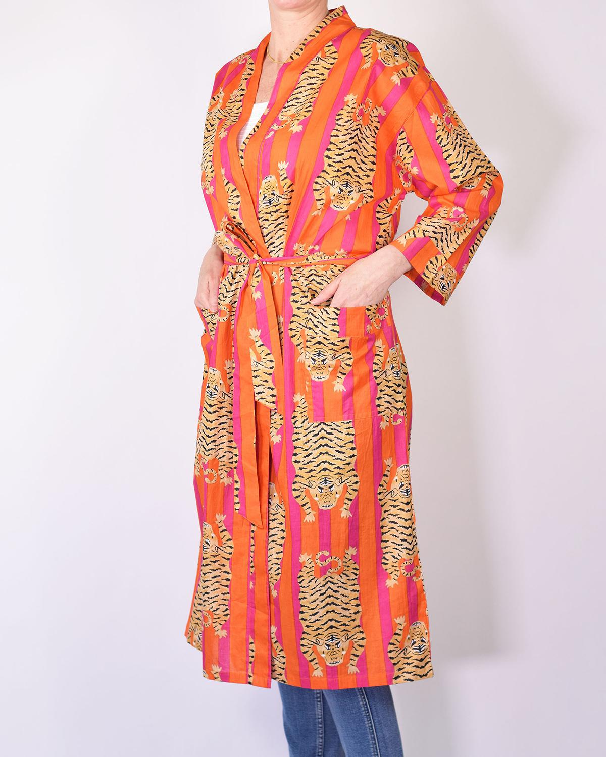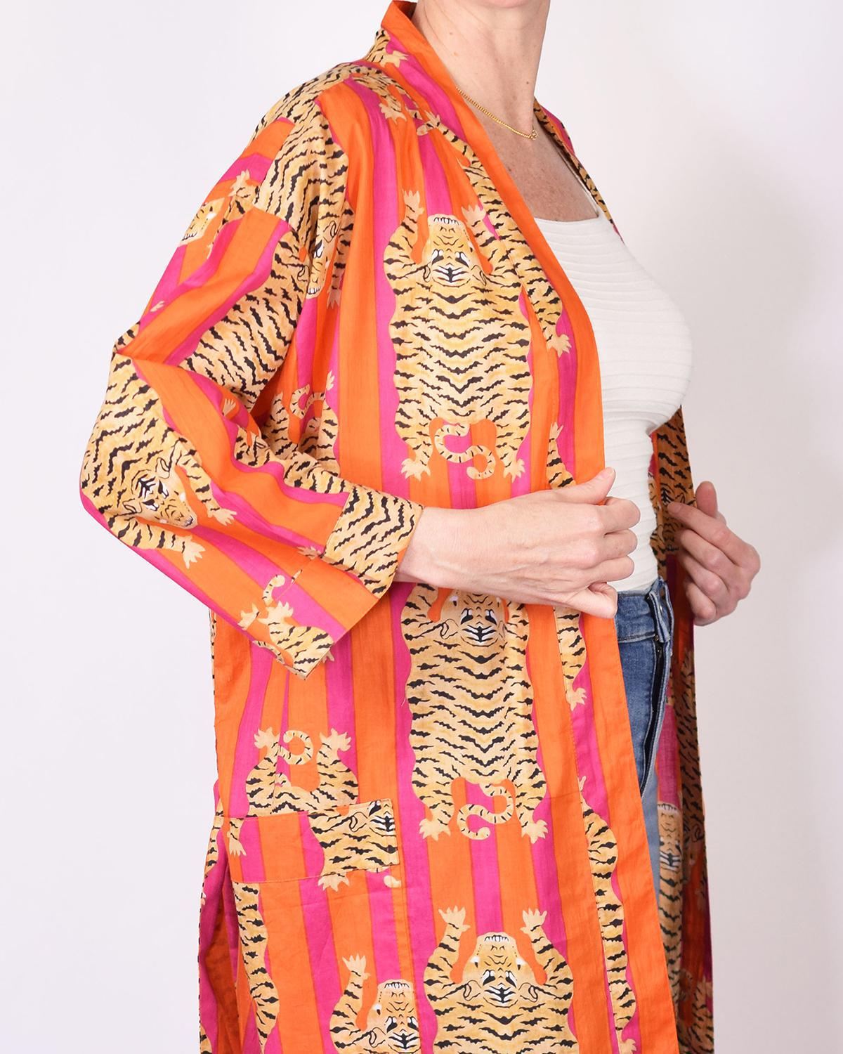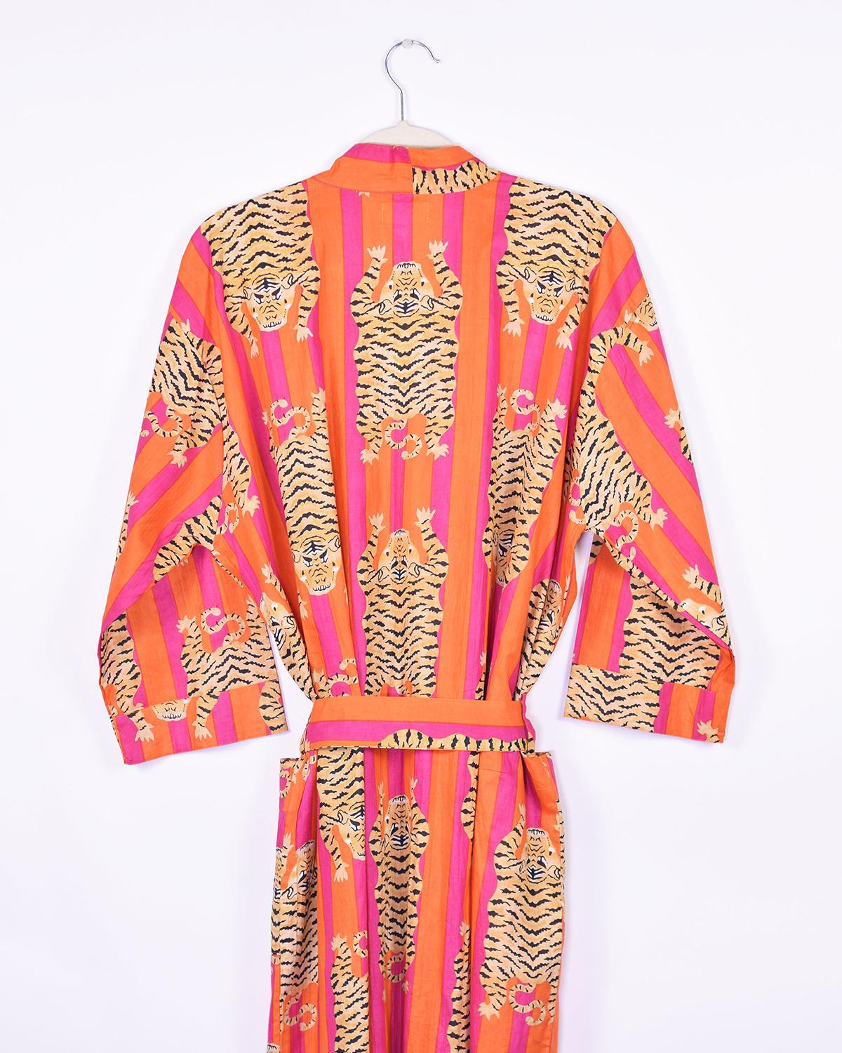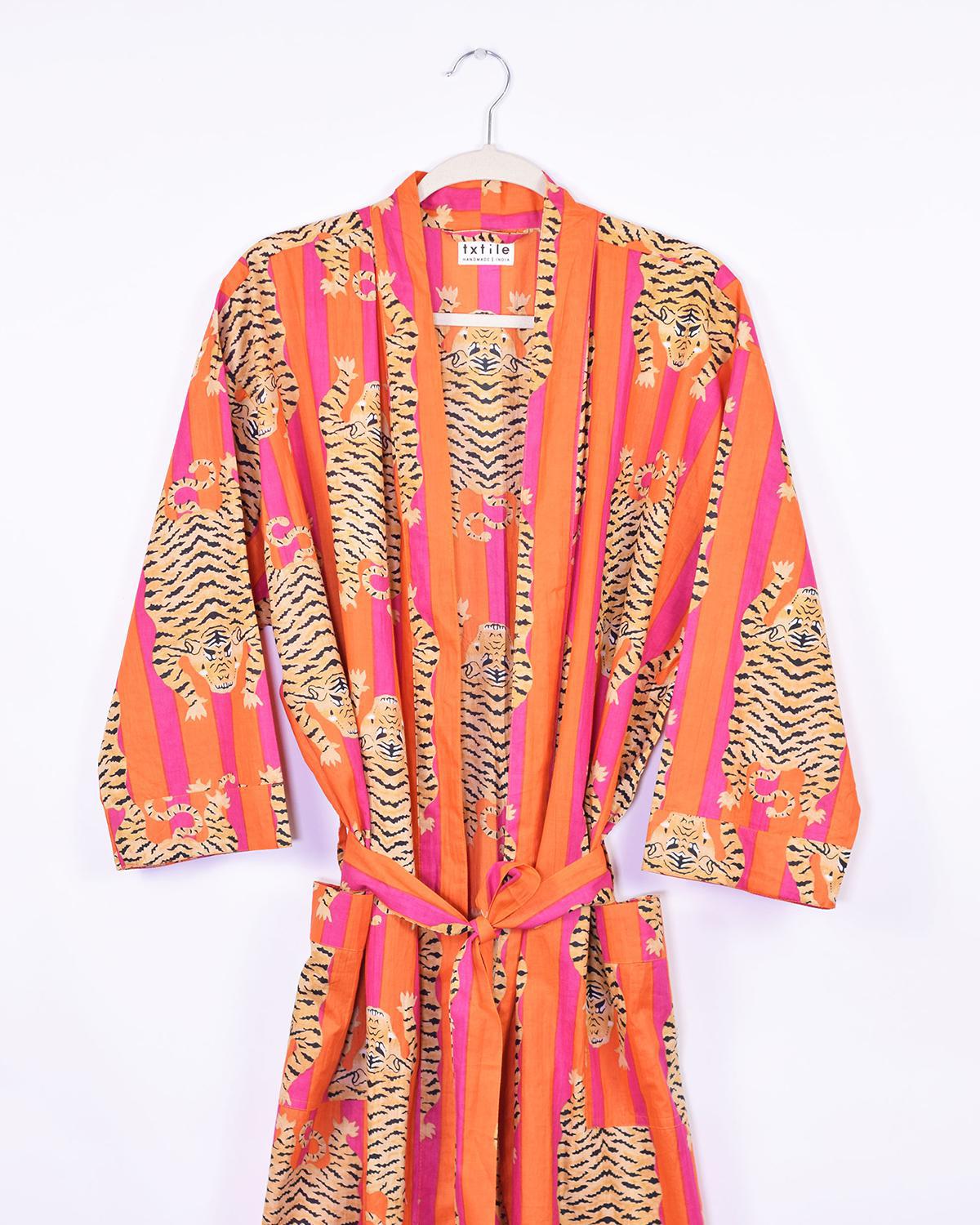 Txtile Lightweight Cotton Robe - Pink/Orange Tiger Print
