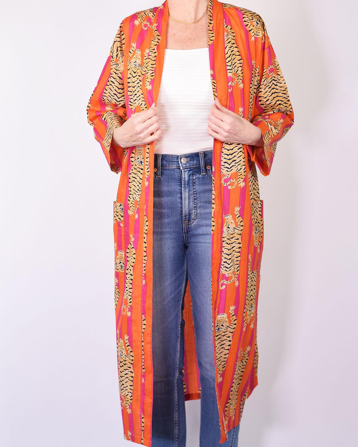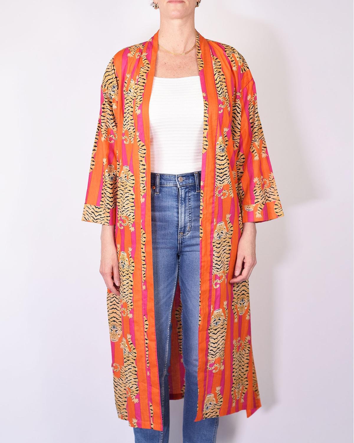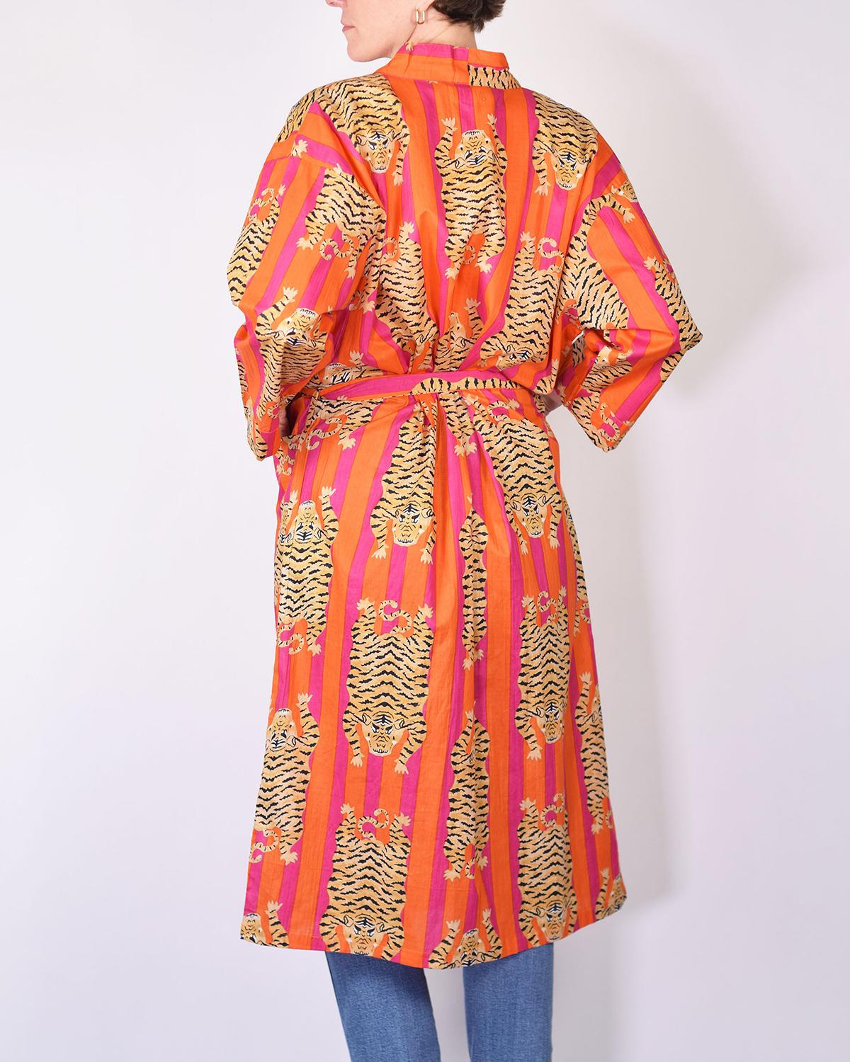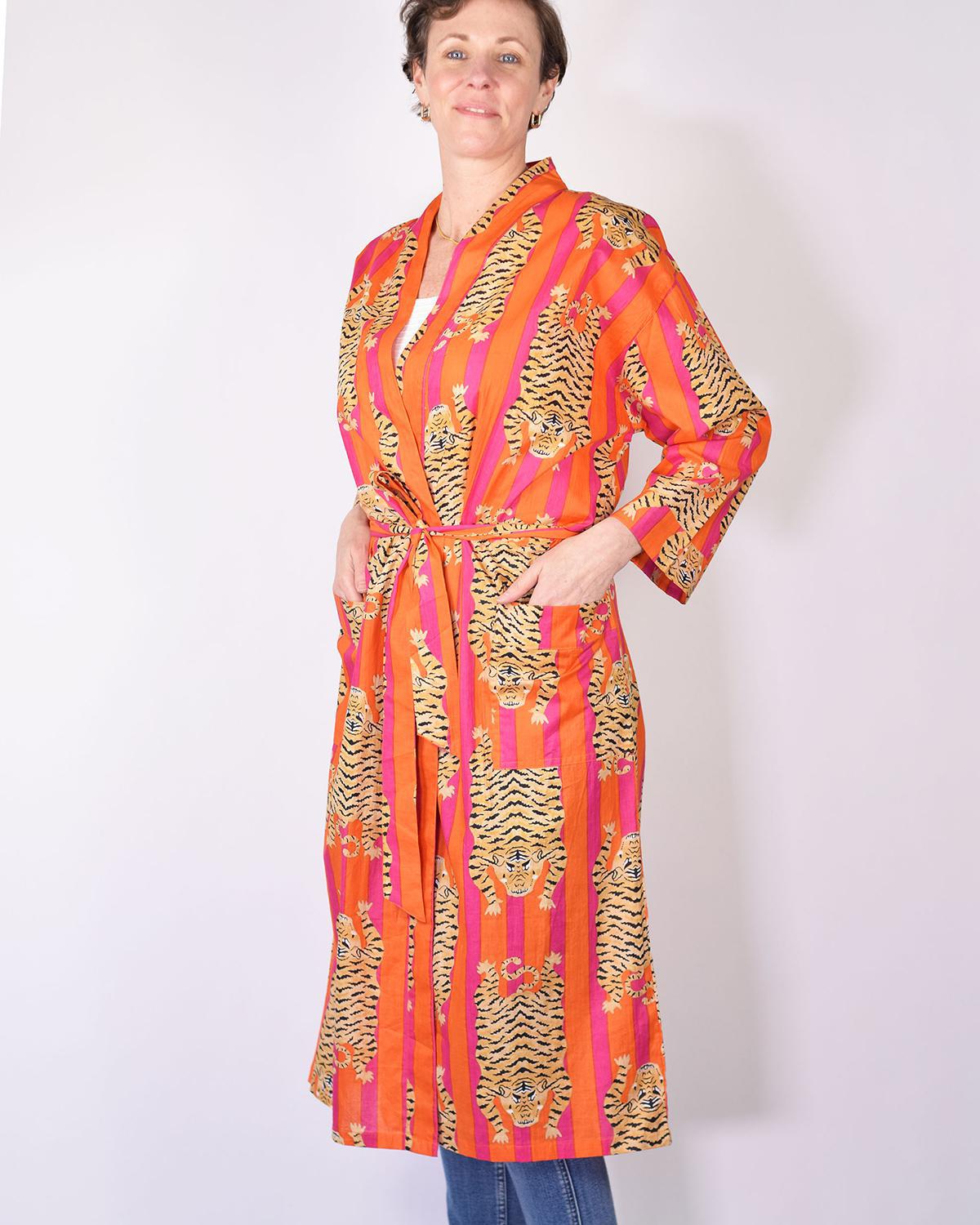 Txtile Lightweight Cotton Robe - Pink/Orange Tiger Print
