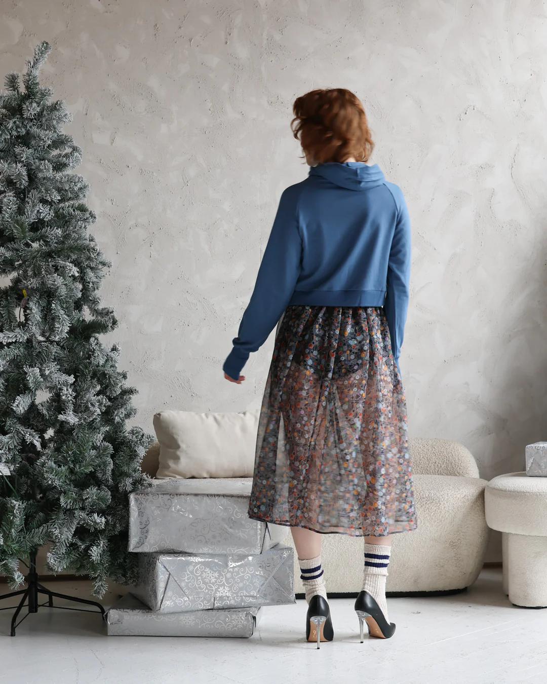 This is the same print as the Silk Luna fabric, so you can pair it with almost any color, but this version is sheer and super light and flowy! Also a deadstock fabric from the now-defunct Chicago brand Syl Markt.